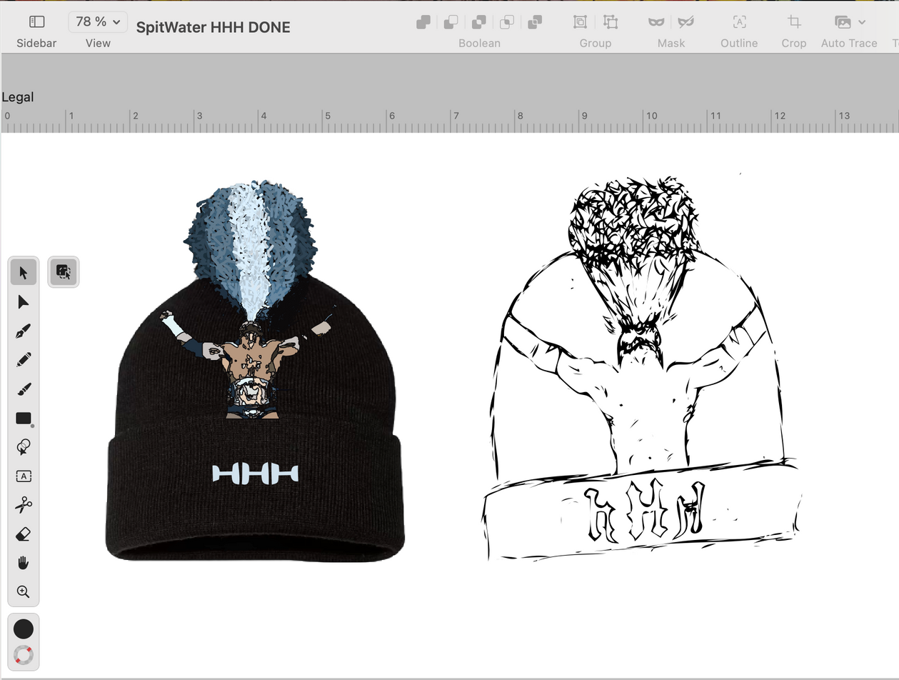 On the topic of Triple H, this beanski was first sketched by hand. Afterwards, I used the reference picture itself and traced it via the Vectornator app.